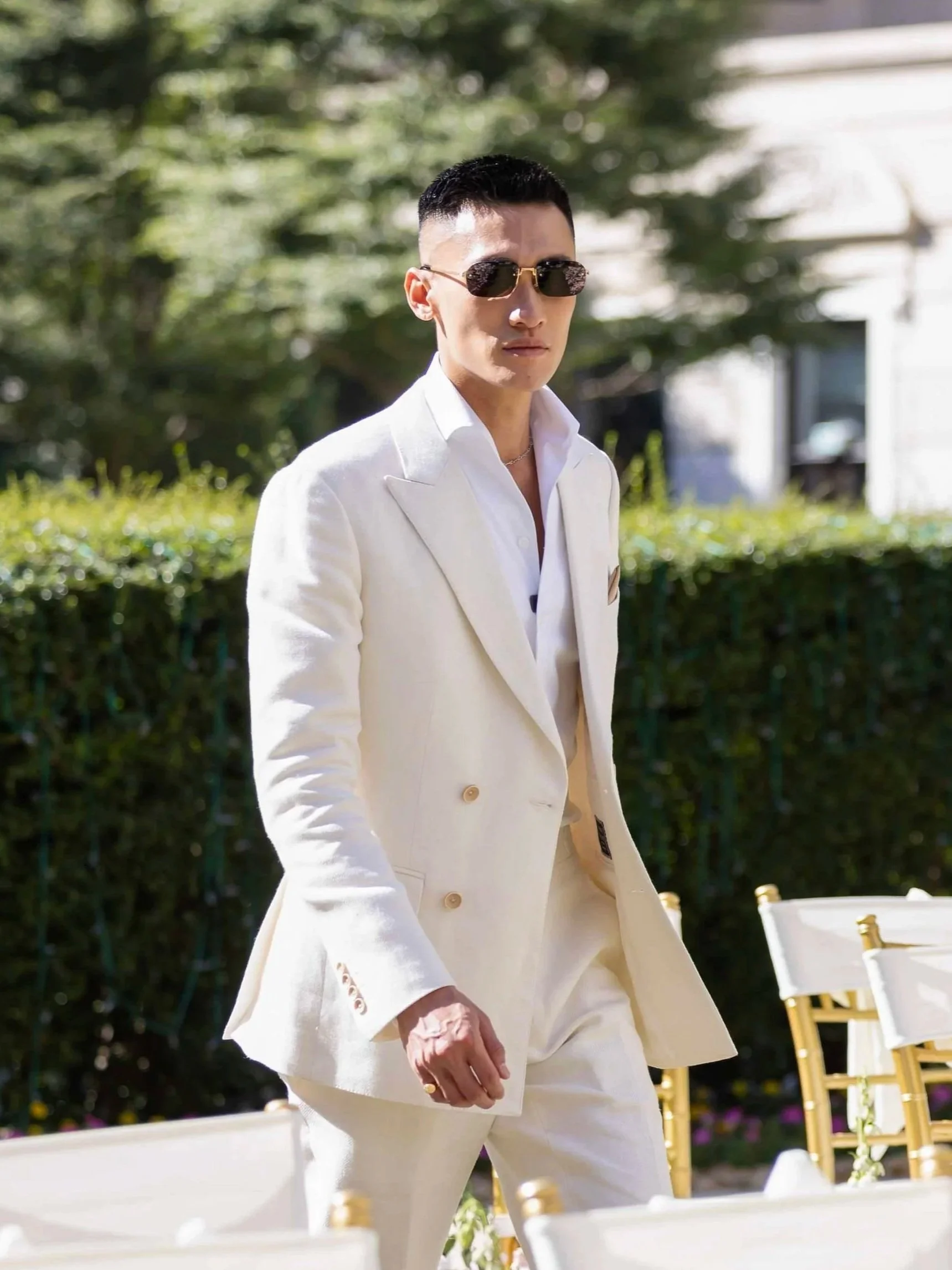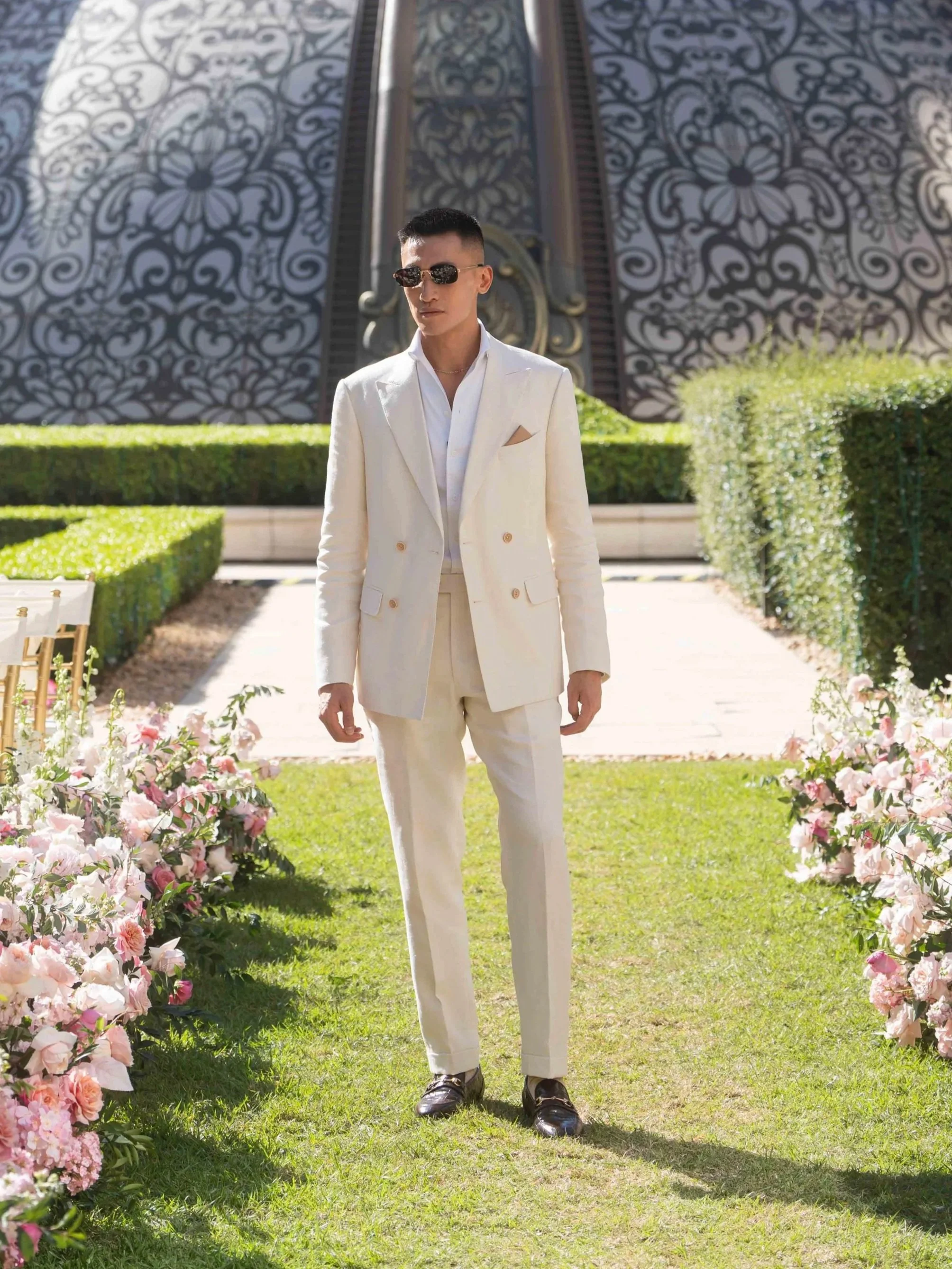 Wilson’s completed suit was the perfect harmony of comfort and ceremony: lightweight and breathable for the garden setting, yet impeccably structured to project confidence and masculinity. When he tried it on for the final fitting, the smile said everything — this was a suit that made him feel like the leading man he truly is.