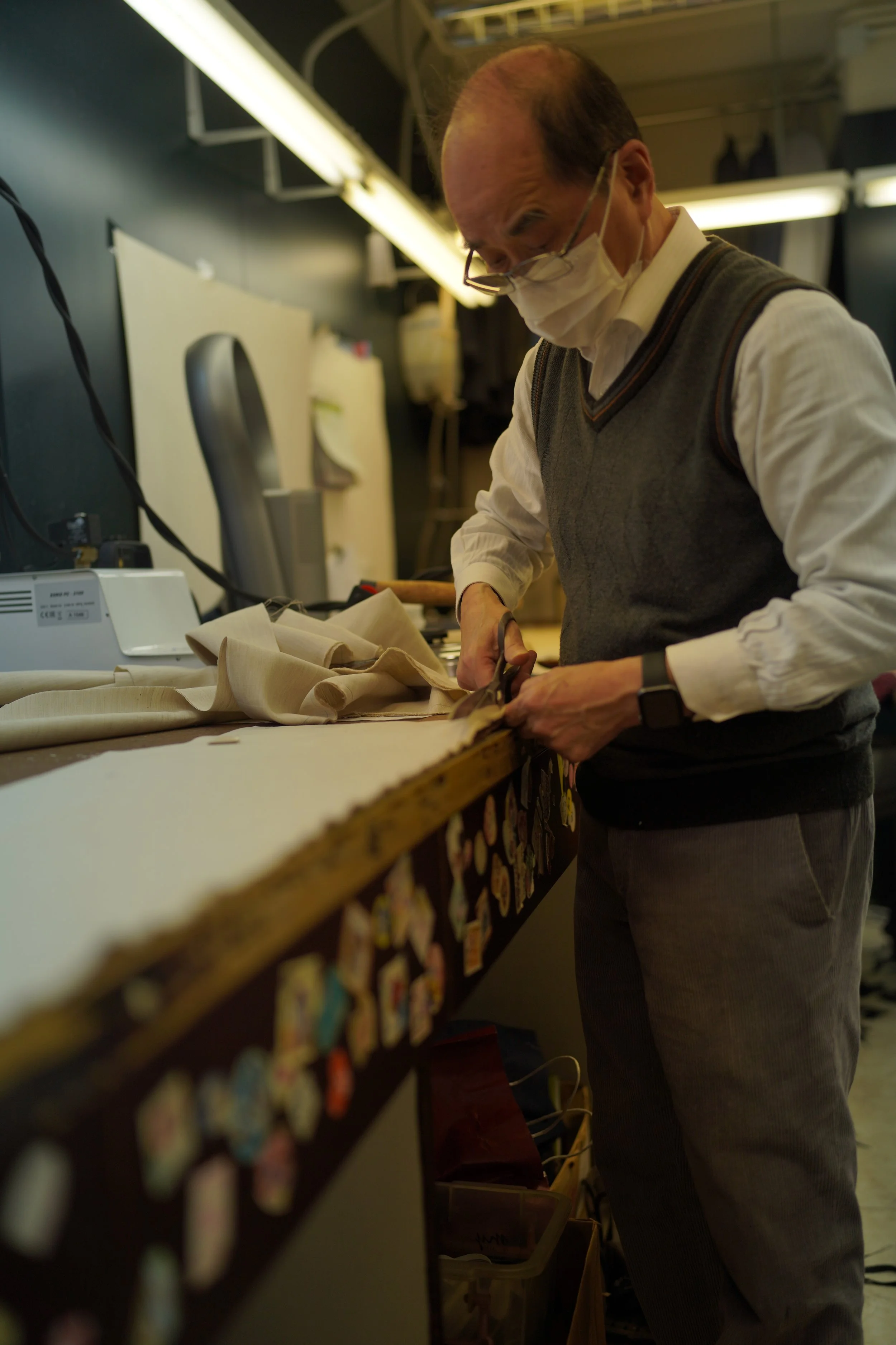 The fathers are gone now and so are the old Hong Kong cutters who once filled the streets of Kowloon and Central. The trade they built was born in Shanghai’s smoky ateliers, refined under neon lit street lights of Hong Kong. Li, Chan, and Wong never taught their sons. Why would they? The boys grew up watching their dads come home with aching backs and calloused fingers, then chose law school, finance, anything else. The needle stays silent.